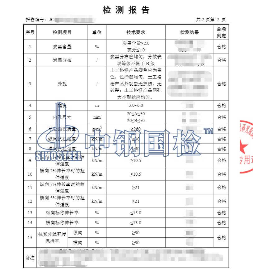 中鋼國檢作為專業(yè)的檢測機(jī)構(gòu),是質(zhì)檢總局首批批準(zhǔn)成立的第三方公正性技術(shù)檢驗(yàn)機(jī)構(gòu),目前已經(jīng)進(jìn)行檢測服務(wù)40多年,有著非常豐富的檢測經(jīng)驗(yàn),下面是某單位委托中鋼國檢做的雙向拉伸塑料土工格柵檢測,詳細(xì)內(nèi)容如下: