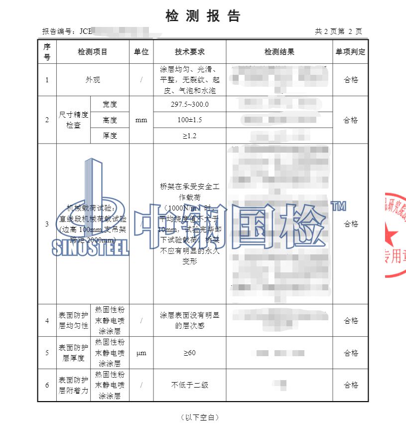中鋼國檢作為專業(yè)的檢測機(jī)構(gòu),是質(zhì)檢總局首批批準(zhǔn)成立的第三方公正性技術(shù)檢驗(yàn)機(jī)構(gòu),目前已經(jīng)進(jìn)行檢測服務(wù)40多年,有著非常豐富的檢測經(jīng)驗(yàn),下面是某單位委托中鋼國檢做的電纜橋架檢測,詳細(xì)內(nèi)容如下: