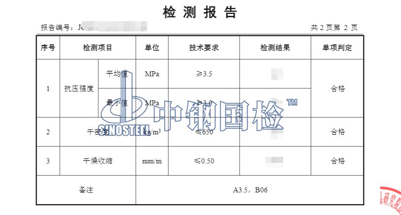 以上只是部分混凝土檢測項目,具體的檢測項目需要根據(jù)混凝土種類、檢測目的、客戶技術(shù)要求等來定,下面就是某施工單位委托中鋼國檢做的蒸壓加氣混凝土砌塊檢測,詳細內(nèi)容如下: