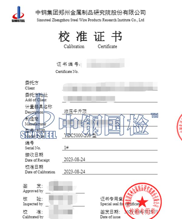 中鋼國(guó)檢擁有符合標(biāo)準(zhǔn)要求的專業(yè)實(shí)驗(yàn)室,可以保證檢測(cè)數(shù)據(jù)的準(zhǔn)確性。中鋼國(guó)檢的服務(wù)群體已經(jīng)覆蓋全國(guó),目前有十多家分公司和34個(gè)辦事處在全國(guó)各地分布,能做的及時(shí)響應(yīng),及時(shí)出具報(bào)告,并具有CMA/CNAS檢測(cè)資質(zhì),檢測(cè)報(bào)告全國(guó)認(rèn)可。下面是某單位委托中鋼國(guó)檢做的千斤頂校準(zhǔn),詳細(xì)內(nèi)容如下: