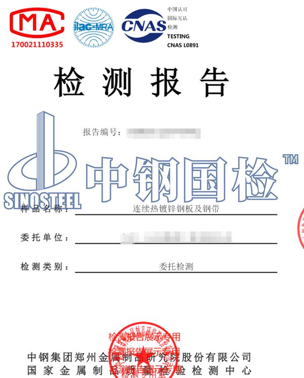 中鋼國檢檢測案例樣品名稱:連續(xù)熱鍍鋅鋼板
