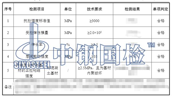 檢測(cè)項(xiàng)目包含:抗拉強(qiáng)度,受拉彈性模量,伸長(zhǎng)率,彎曲強(qiáng)度,層間剪切強(qiáng)度,纖維復(fù)合材與基材正拉粘結(jié)強(qiáng)度,單位面積質(zhì)量和纖維體積含量。